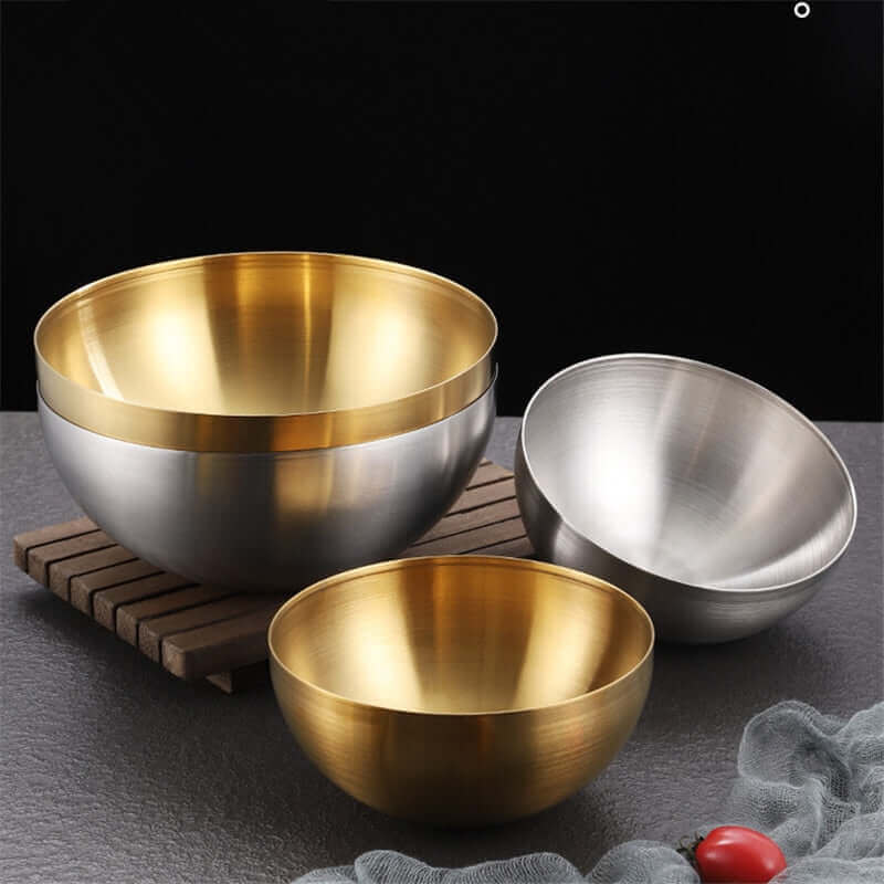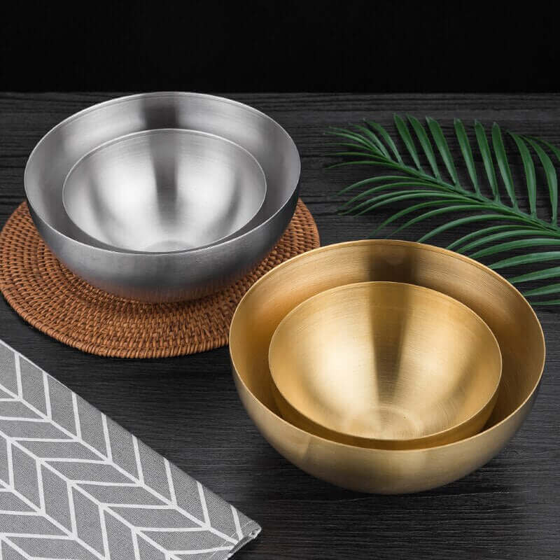 Découvrez nos magnifiques bols en acier, l'ajout parfait à toute cuisine ou salle à manger. Construit en acier inoxydable de haute qualité, ces bols sont résistants, durables et excellents pour servir divers plats. Ils sont disponibles en deux tailles (15 cm et 20 cm) et dans des couleurs or ou argent. Ces bols conviennent parfaitement pour le riz, les salades, les nouilles ramen, les trempettes, les fruits et bien d'autres mets encore. Leur polyvalence les rend idéaux pour de nombreuses occasions, que ce soit dans des restaurants, des cuisines familiales, des hôtels, lors de banquets ou lors de pique-niques en plein air.