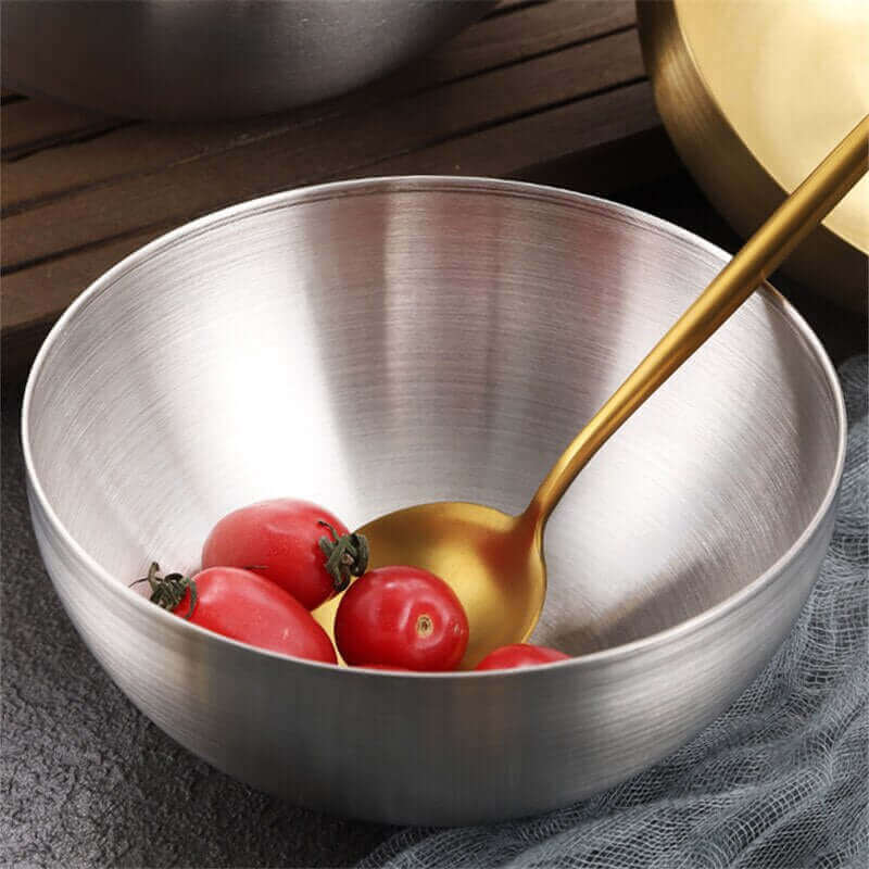 - Polyvalent : Ces bols en acier au design soigné conviennent parfaitement pour présenter une grande variété de plats, faisant d'eux un élément incontournable dans chaque cuisine ou salle à manger. Ils peuvent accueillir tout, des salades aux nouilles ramen, en passant par les fruits, et s'adaptent à de multiples évènements.