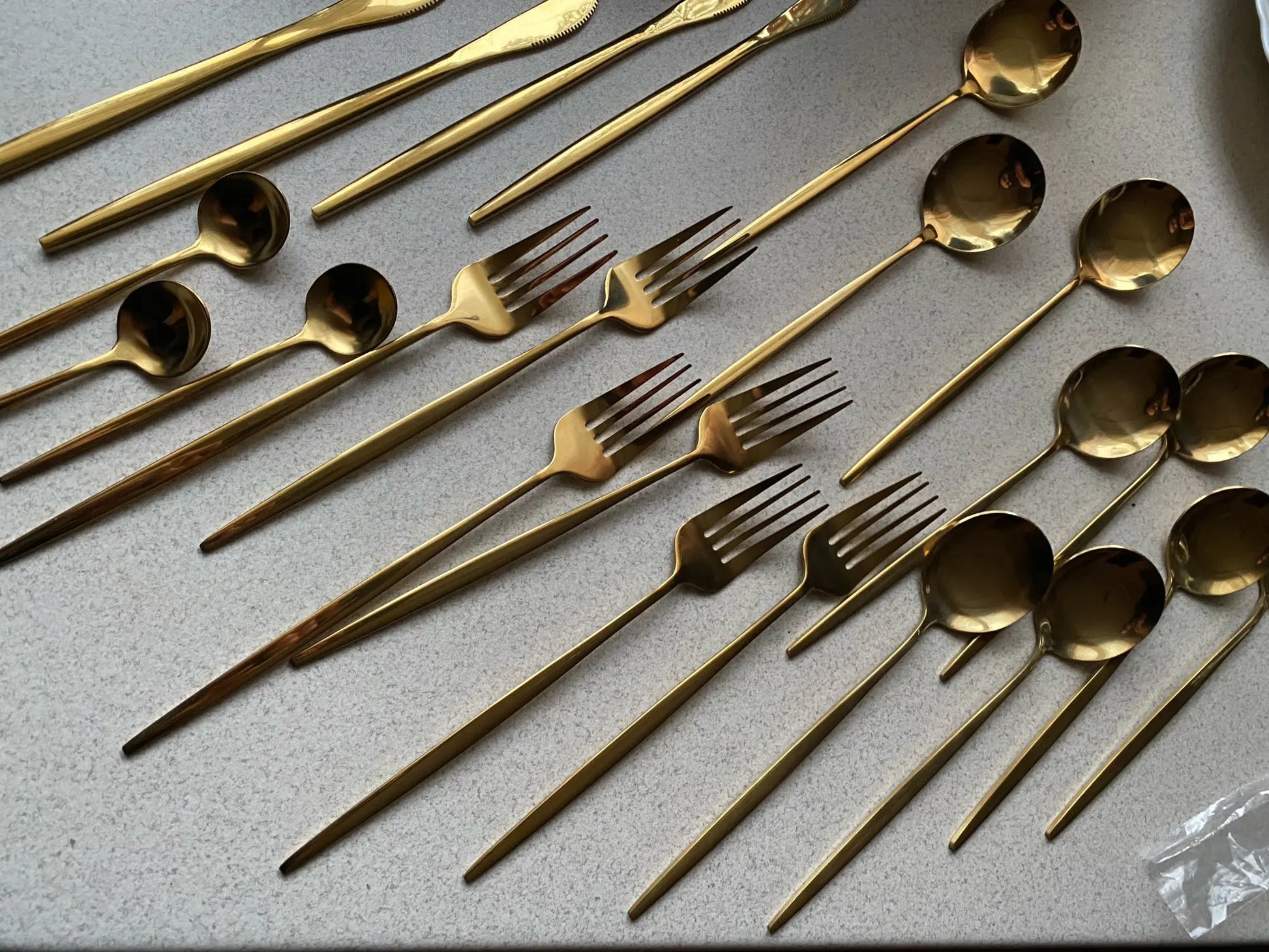 Set de vaisselle en or de 24 pièces en acier inoxydable