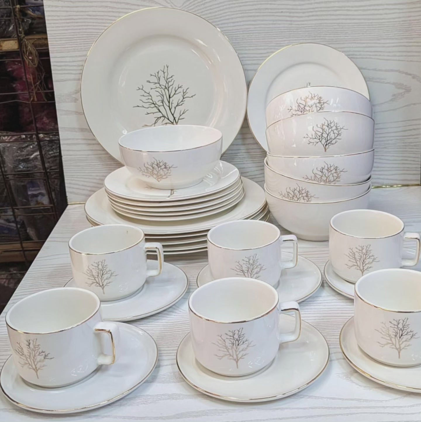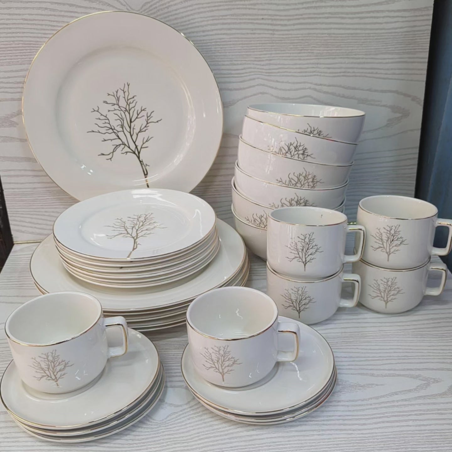 Set de vaisselle en céramique de 30 pièces avec bordure dorée désormais disponible -10,450/-