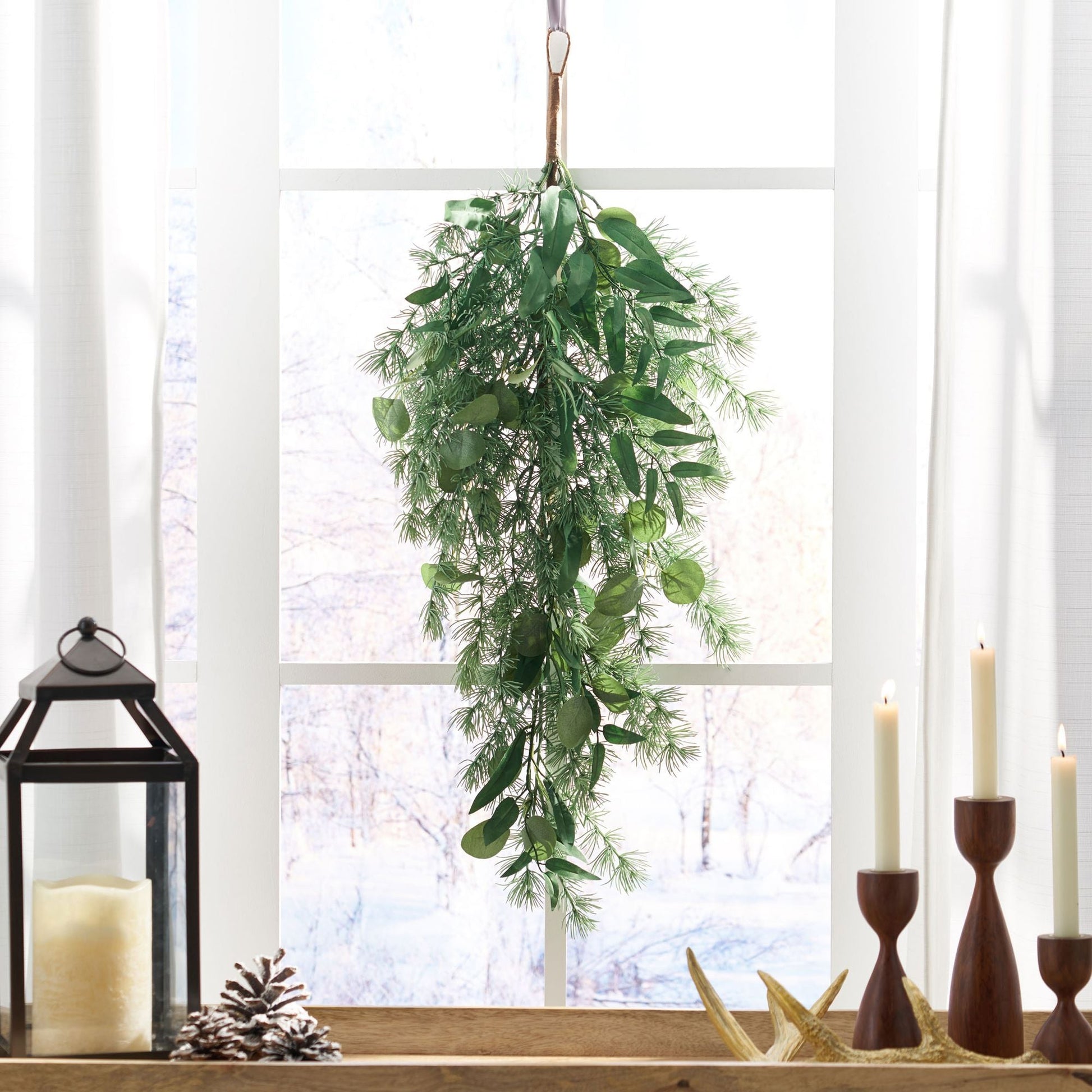 Ajoutez une ambiance festive à votre intérieur avec la couronne goutte de feuilles verdoyantes de 32,5 pouces