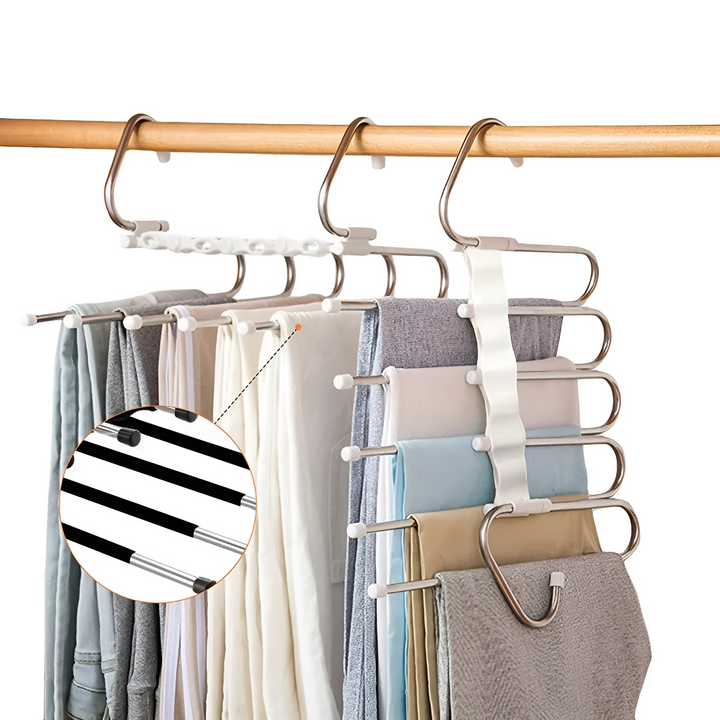 Hang until 5 pants on a single medium to maximize space And simplify Your morning routine.