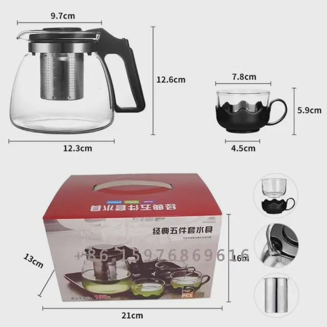 Set de thé en verre avec infuseur résistant à la chaleur, comprenant 5 pièces -2350/-