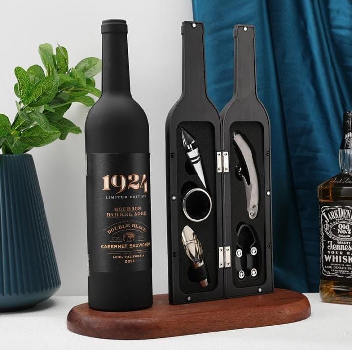 Faites plaisir : cet ensemble d'accessoires à vin premium est un cadeau idéal pour les passionnés de vin. Présenté dans une jolie boîte cadeau en forme de bouteille avec un système de fermeture magnétique.