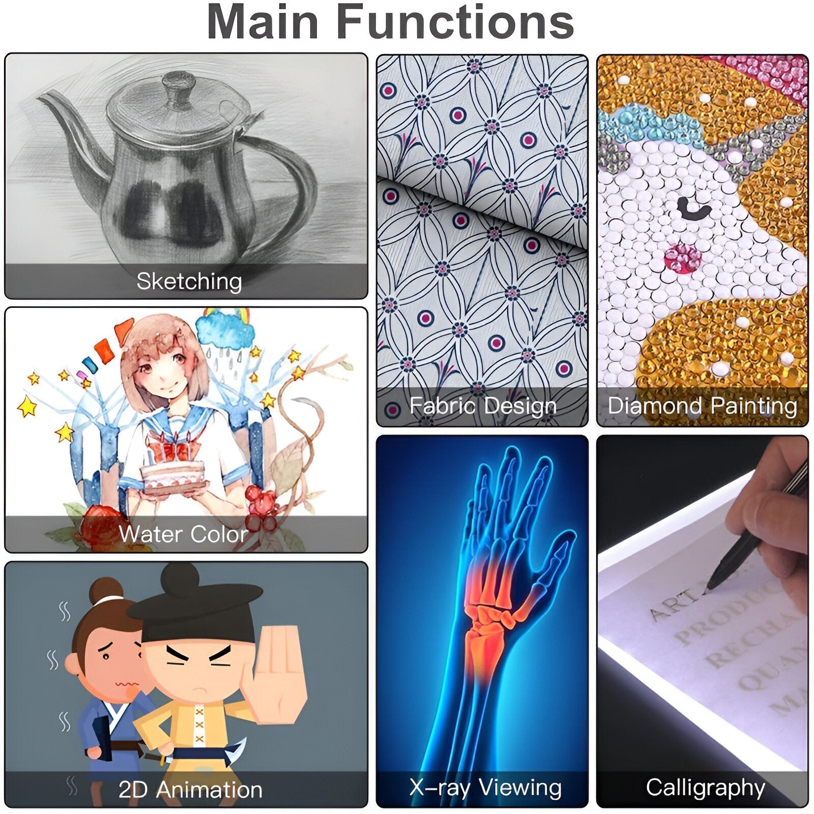 Versatile Applications: Designed for a wide range of activities, this light box is an essential tool for sketching, drawing, 2D animation, calligraphy, embossing, scrapbooking, tattoo transferring, quilting, and more. It’s ideal for both amateurs and professionals, making it a thoughtful gift for artists, designers, and photographers.