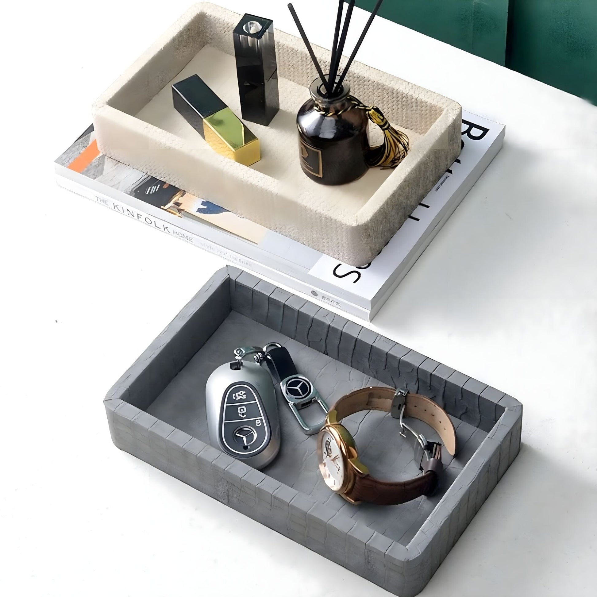 Our modern-style PU Leather Storage Tray, a sleek and eco-friendly solution for organising sundries. Available in beige, grey, and green, this rectangular tray crafted from durable PU leather is not only practical but also environmentally conscious.