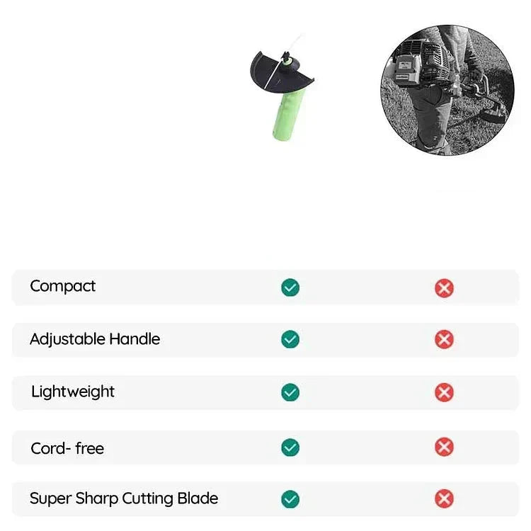 - Utilisation : Parfaite pour tondre la pelouse et éliminer les mauvaises herbes dans le jardin