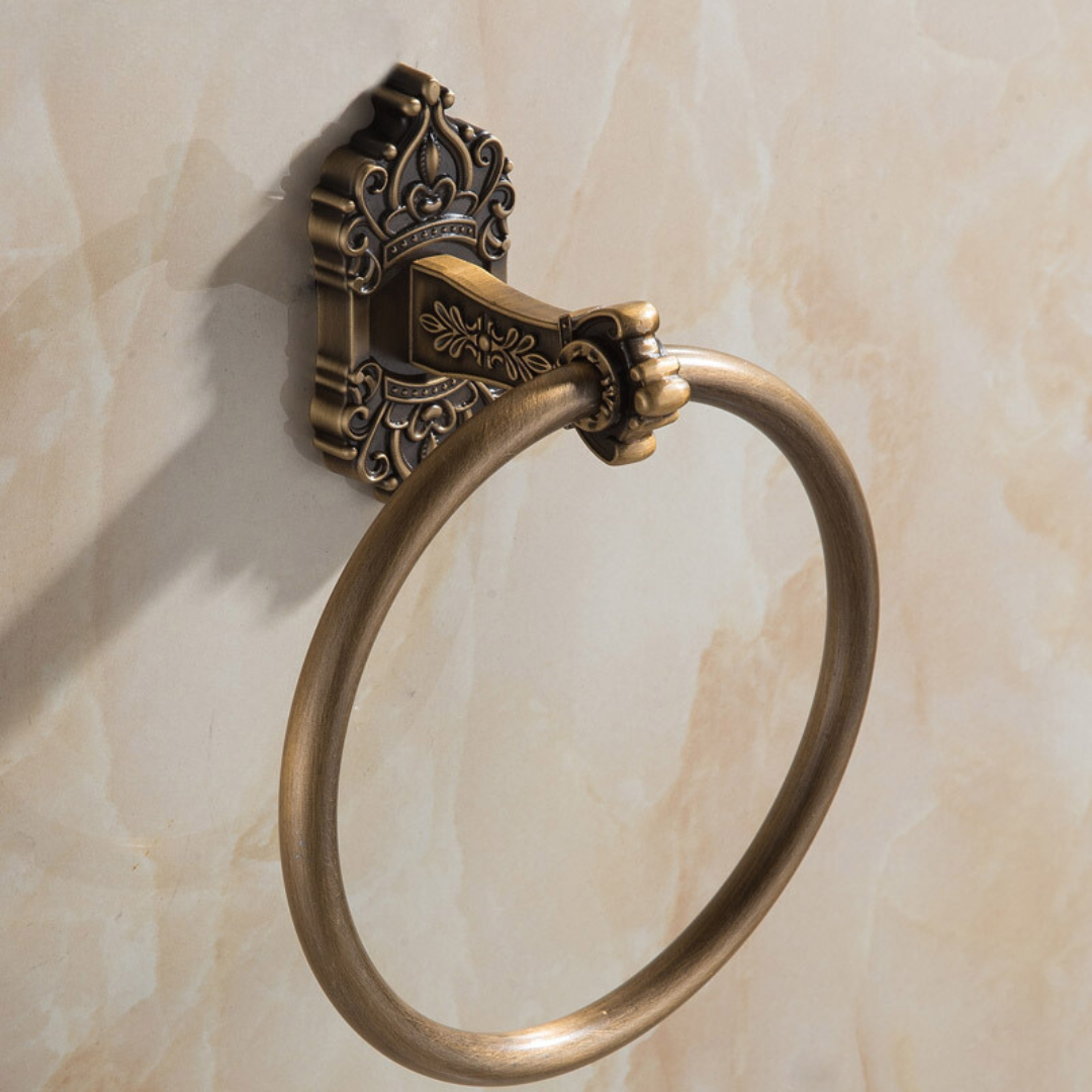 Voici notre dernier ajout à votre salle de bain : un porte-serviettes élégant pour votre espace. Cet anneau porte-serviette circulaire, se fixant au mur et fabriqué en aluminium robuste avec un traitement en laiton antique de premier choix, insuffle à votre salle de bain une touche de sophistication tout en étant très fonctionnel. Il est parfait pour apporter un charme rétro et est conçu pour durer tout en rehaussant la décoration de votre salle de bain.