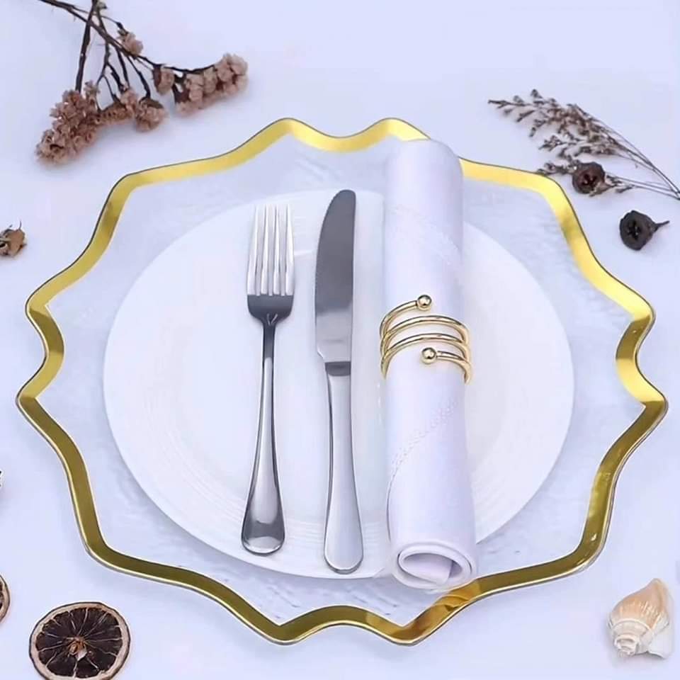 Plat de service en acrylique -6 pièces-3250/- 1 pièce-850/- idéal pour des repas élégants lors de mariages, d'événements, dans les restaurants et à domicile. Il protège la table et la nappe des taches pendant le service et contribue à maintenir la chaleur des plats.