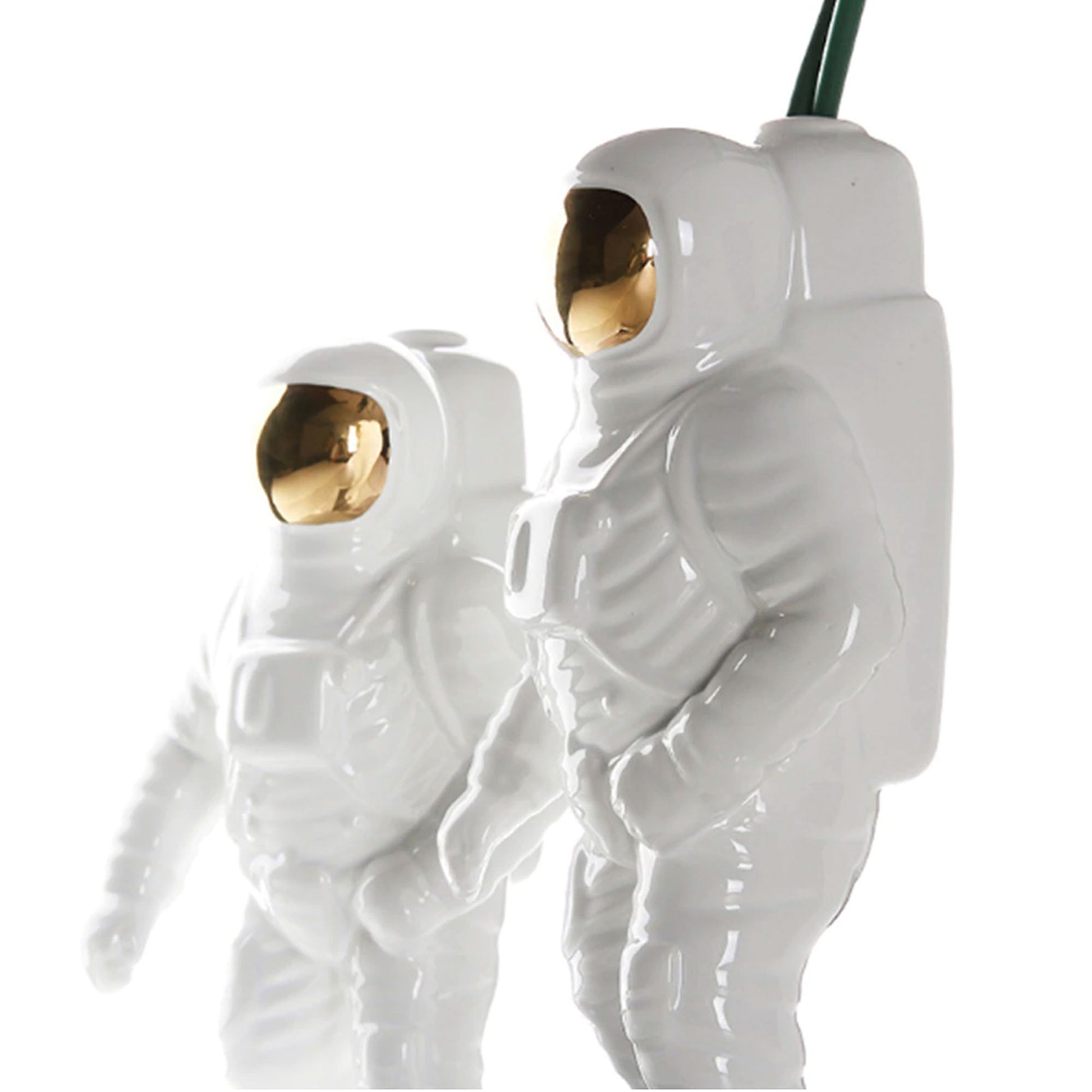 Available in white, silver or gold. This quirky porcelain astronaut works well as a standalone ornament or when filled with your favourite flower.