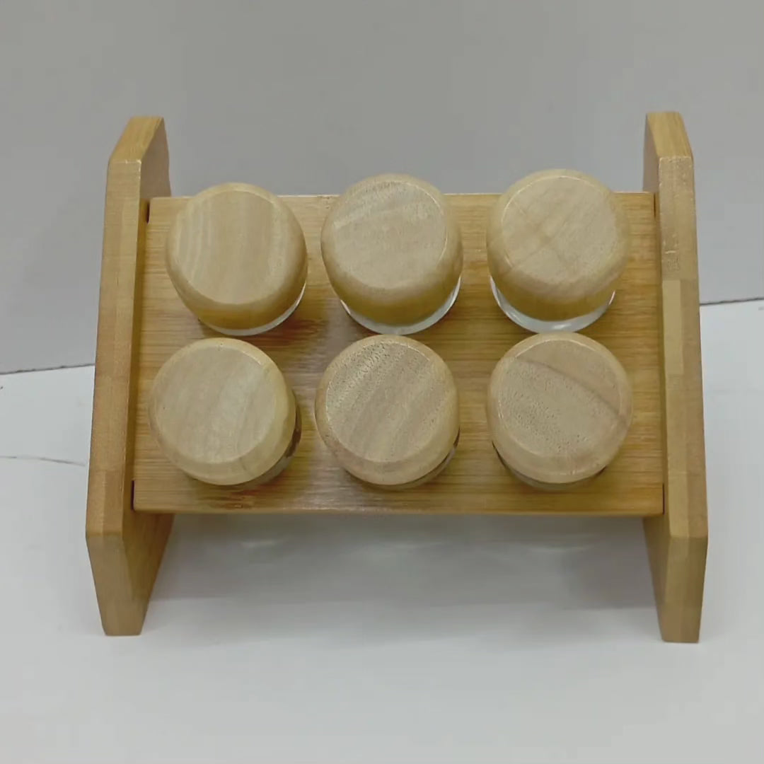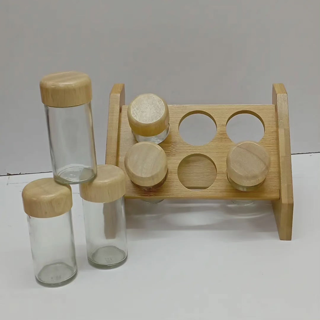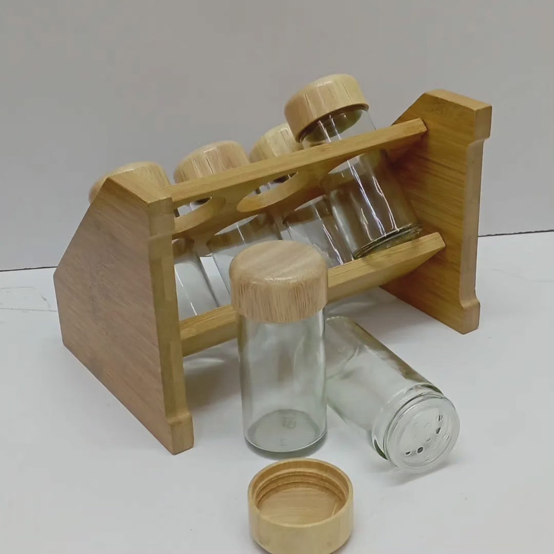 Support à épices en bambou avec 6 récipients à épices dotés de couvercles en bambou-2595/=