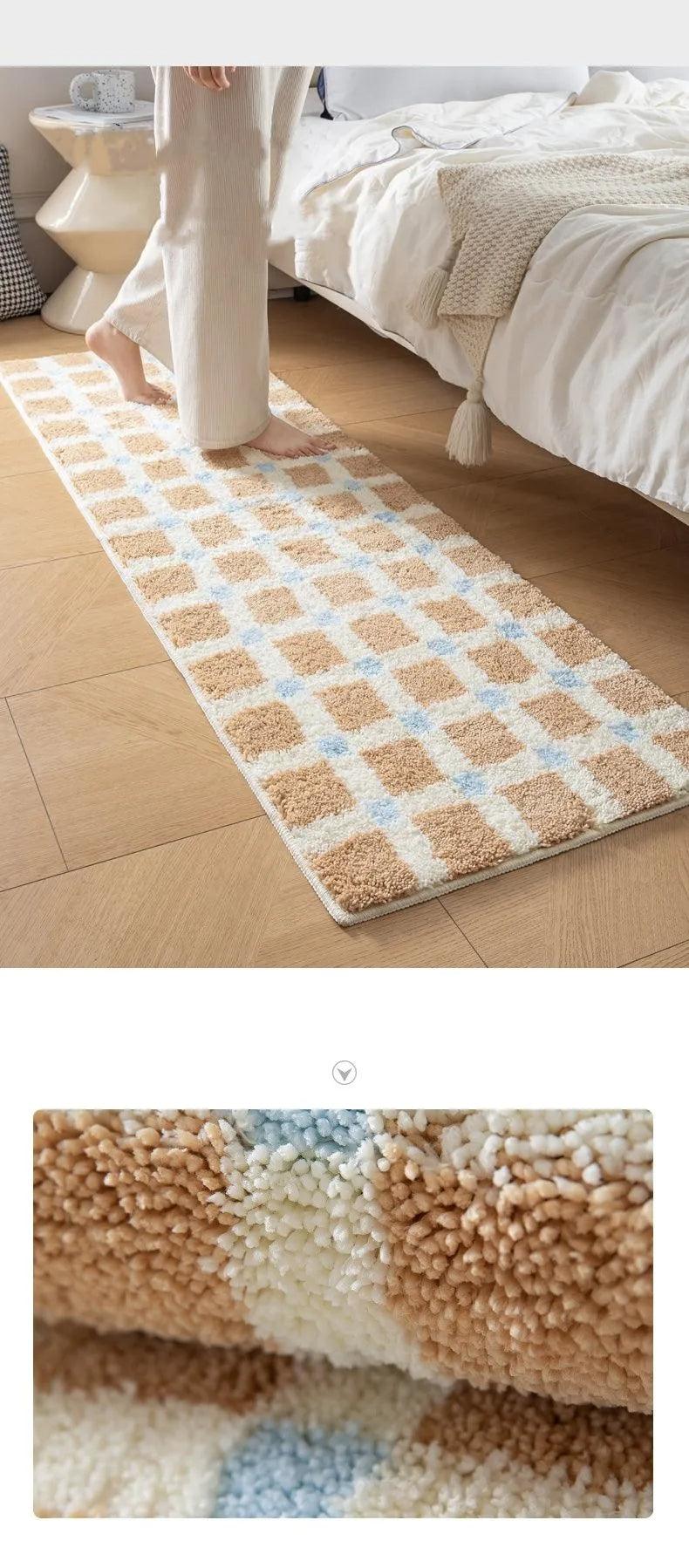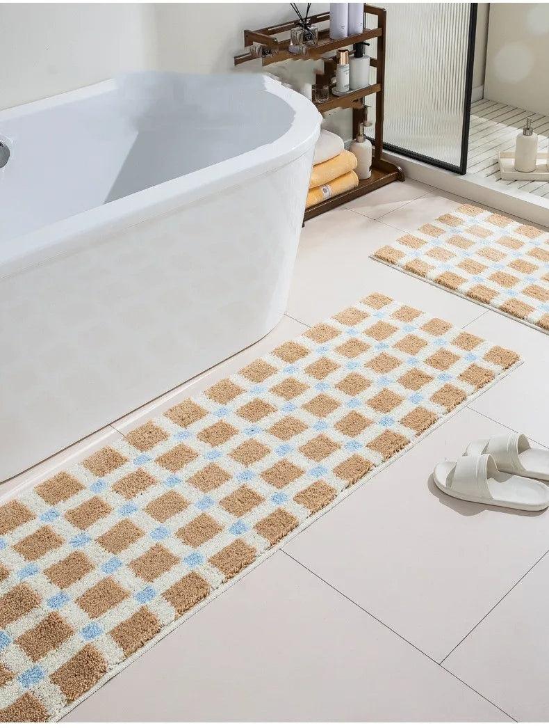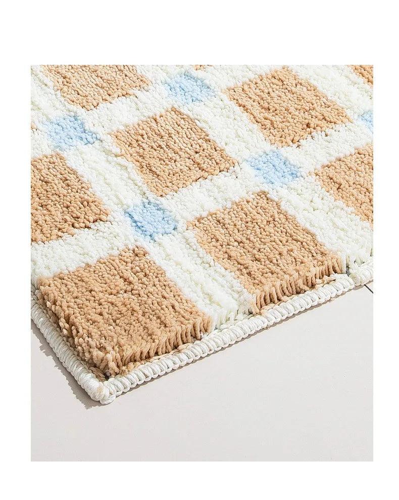 Tapis de chambre à coucher crème et ciel bleu à motifs en tufté │ Tapis de salle de bain moelleux avec fond antidérapant