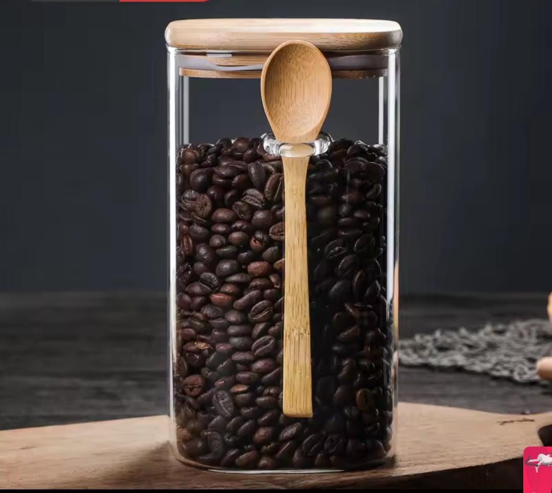 Récipient en verre avec un couvercle en bambou et une cuillère -1350/- 3 unités pour 2999/-