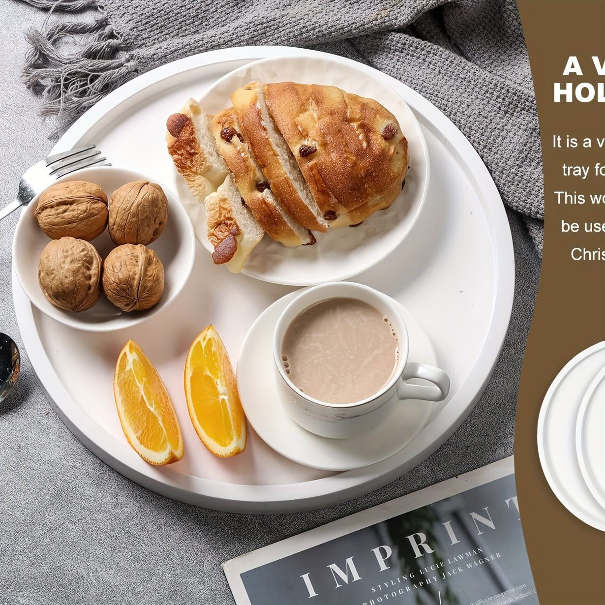 La BohoTray ne se limite pas à être un simple plat, c'est une véritable pièce maîtresse pour votre décoration intérieure. Avec son design rond sophistiqué et son fini en poudre, ce plat apporte une ambiance douce et naturelle à n'importe quel environnement, que ce soit dans le salon, la chambre à coucher ou le bureau. Il est idéal pour mettre en valeur vos bougies, produits parfumés ou objets déco avec élégance. Ce plat polyvalent constitue également un cadeau splendide pour la fête des mères ou pour toute autre occasion festive !