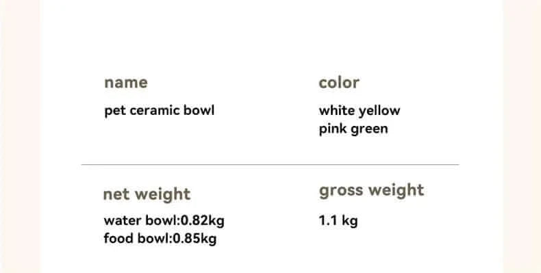 Ce magnifique ensemble de bols en céramique pour chats se décline en quatre teintes élégantes : crème blanc, vert sapin, rose fleur de cerisier et jaune fromage. Quel que soit votre style d'intérieur, une couleur saura s'accorder parfaitement à vos goûts, apportant une note raffinée à la zone de repas de votre chat.