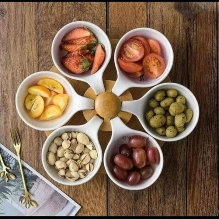 Kit de récipients à snacks en céramique d'inspiration nordique avec support en bambou-2999/-