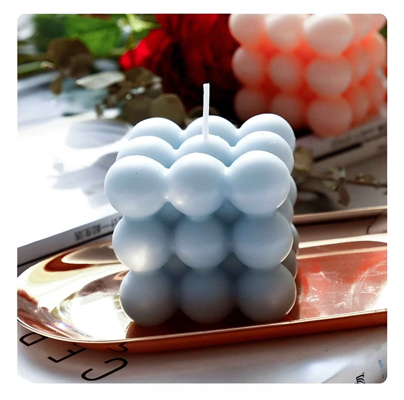 Geometric bubble cube candles are a trendy and modern twist on traditional candles. They typically feature a cube-shaped design with geometric patterns or bubbles embedded within the wax. These candles add a touch of contemporary style to any space, whether used for decoration or as a functional light source.