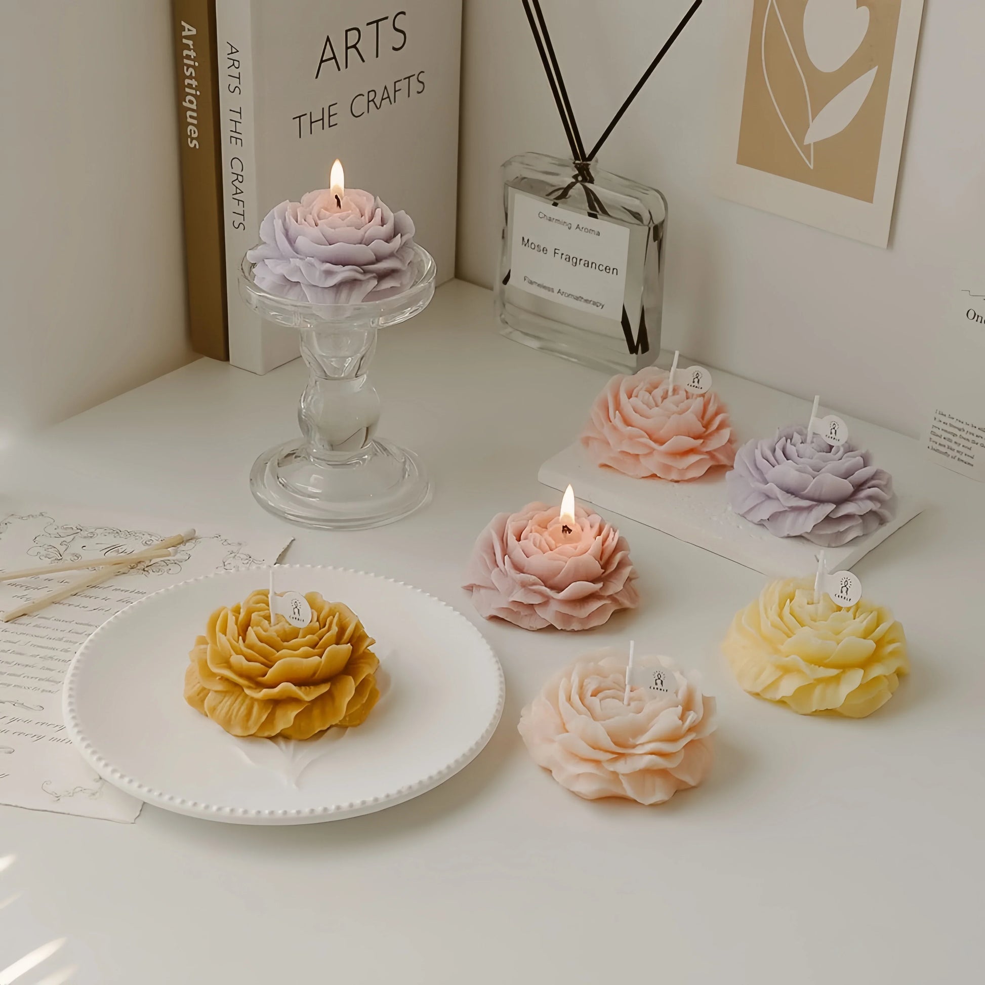 Bougies en cire d'abeille parfumées en forme de pivoine