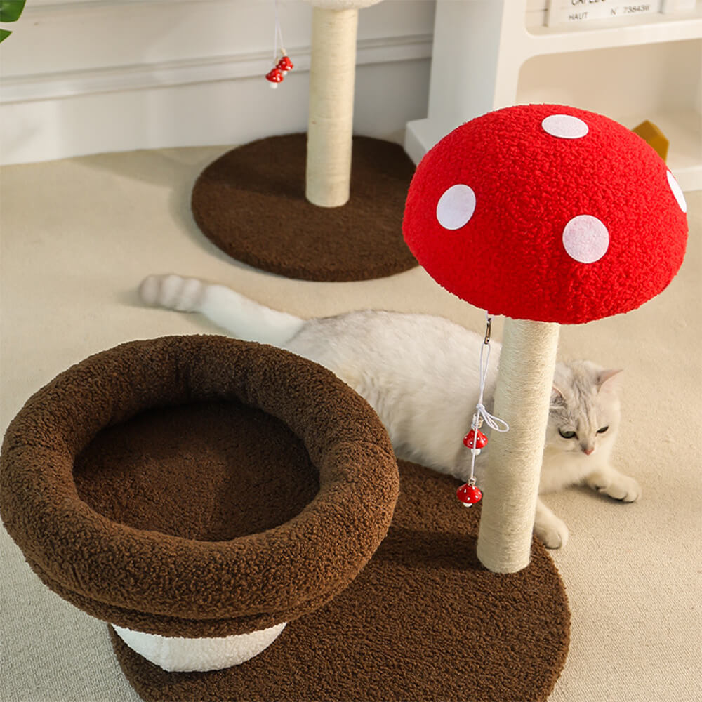 Cadre d'escalade pour chat en champignon rouge avec poteau à gratter en sisal