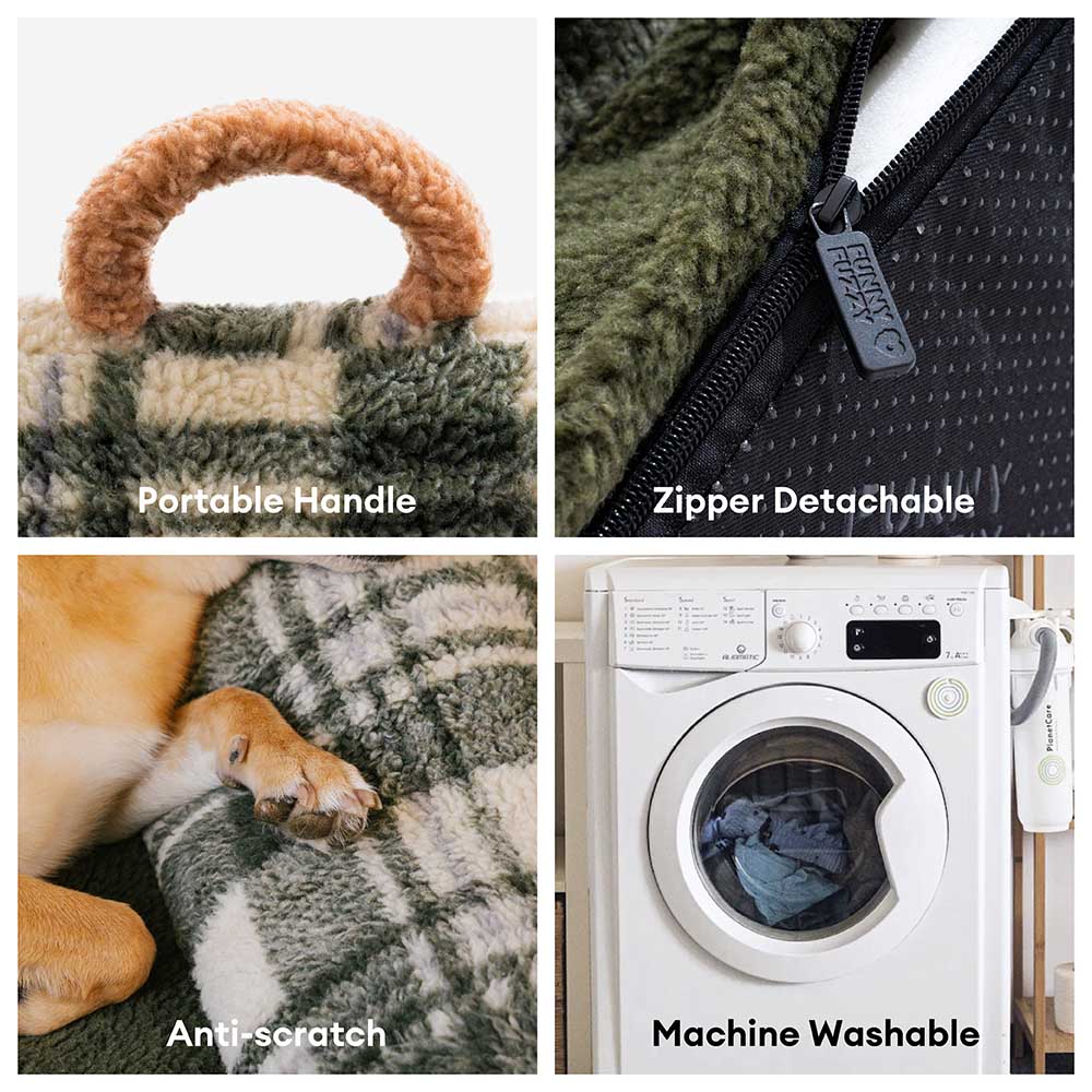 - Facile à transporter: Grâce à sa conception avec une poignée, vous pouvez emmener le lit pour chien où vous le souhaitez, s'adaptant ainsi aux préférences de couchage de vos compagnons.