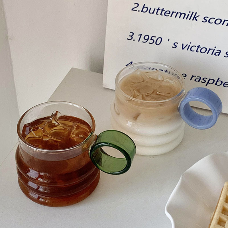The handle provides a comfortable grip. The modern and playful design of this glass adds a unique touch to your home decor. The curved shape is a distinctive element of the product, making it stand out from other glassware.