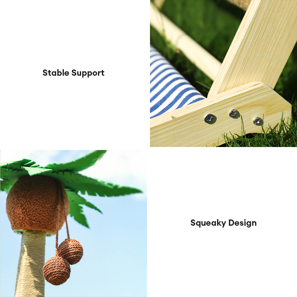 Offrez à votre compagnon félin le summum de la détente avec ce fauteuil de style plage pour chat, équipé d'une planche à gratter intégrée. Fusionnant un design inspiré des vacances d'été avec des fonctionnalités astucieuses, ce fauteuil sert aussi bien d'espace repos agréable que de surface de grattage durable, garantissant le bonheur et le divertissement de votre chat.