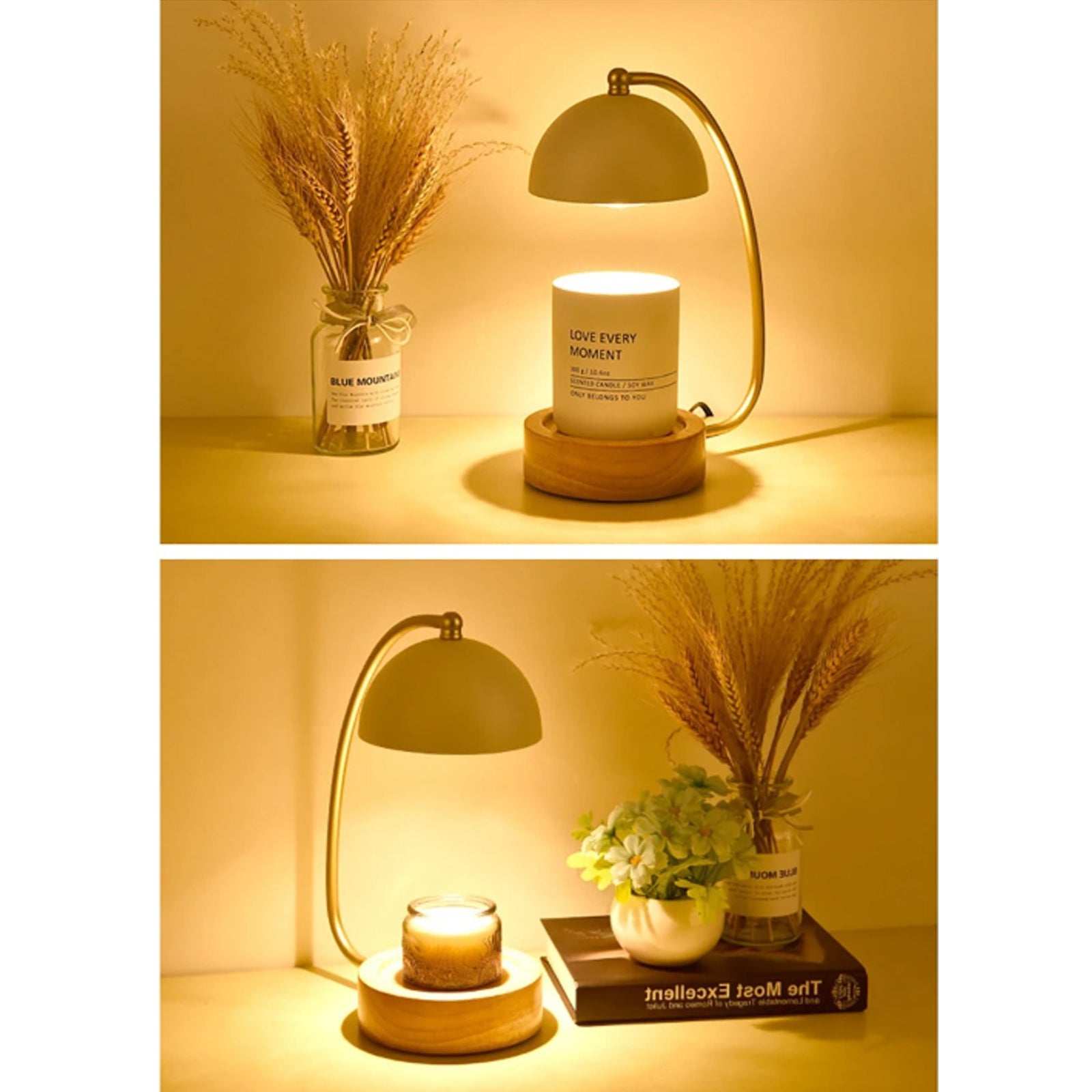 With its combination of metal and wood, the Golden Stand Dome Candle Warmer is a testament to timeless style and contemporary functionality. The knob on/off switch and dimmable feature allow for personalized lighting, while the included timer ensures your space is always perfectly lit. Designed for ease of use, this candle warmer seamlessly integrates into any room, enhancing your daily life with its practical and aesthetic appeal.