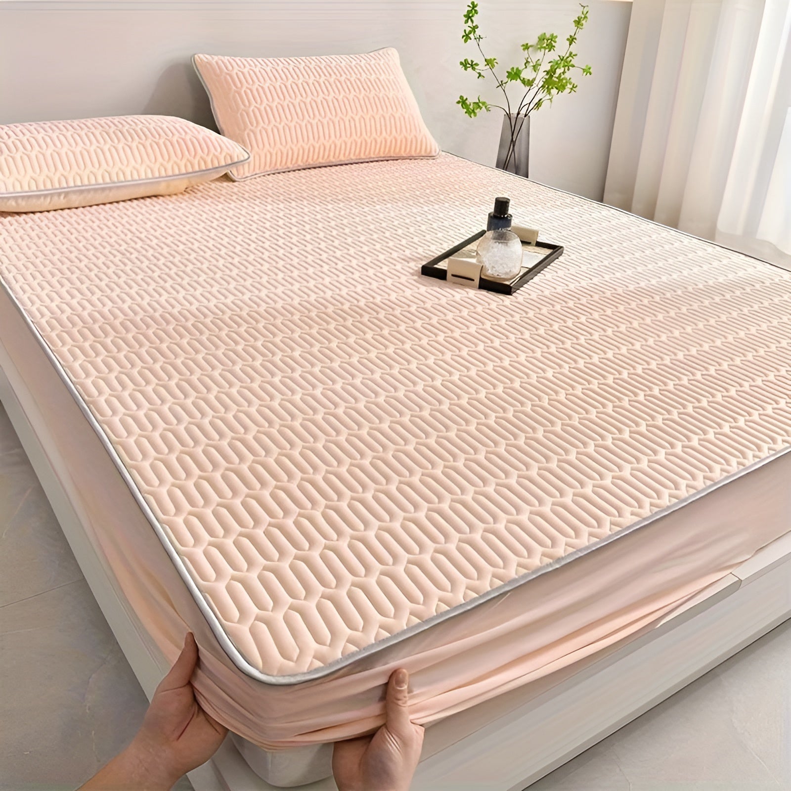 - Type : Surmatelas en latex assorti de taies d'oreiller luxueuses