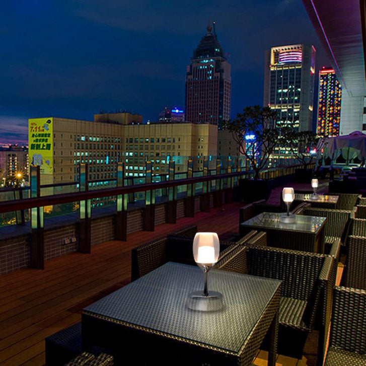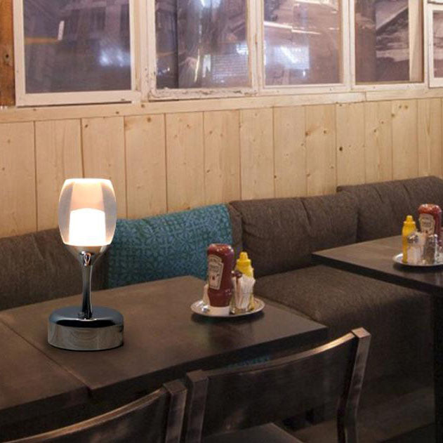 Cette lampe de table contemporaine en chrome est équipée d'un éclairage LED intégré, idéale pour la chambre à coucher, le salon ou le bureau.
