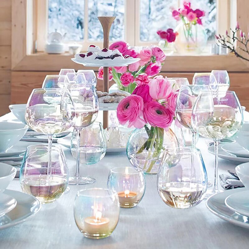 Chaque couleur de l'arc-en-ciel se reflète élégamment dans cette superbe collection d'ustensiles à boire. Chacun applaudit votre sens du style intouchable lorsque vous portez l'un de ces verres raffinés pour porter un toast. Cette collection raffinée de vaisselle à boire comprend des mugs à eau, des flûtes à champagne, un verre à pomme, un verre à vin rouge et une magnifique carafe. Chaque article est proposé individuellement, ce qui vous donne la liberté de combiner les pièces pour créer l'ensemble qui vous correspond le mieux. Notre splendide collection de vaisselle à boire Rainbow Shine est sans plomb et magnifiquement élaborée en cristal de premier choix avec un effet arc-en-ciel intégré au verre. Il est conseillé de les laver à la main afin de préserver leur éclat exceptionnel. Offrez une carafe accompagnée de quatre verres comme cadeau pour une pendaison de crémaillère ou un cadeau de fiançailles que vos amis garderont précieusement. Enrichissez votre bar ou présentez la carafe et les verres sur un plateau chic sur une console de salle à manger. Cette magnifique collection de vaisselle à boire est tout aussi agréable à contempler qu'à utiliser et constitue un must amusant.