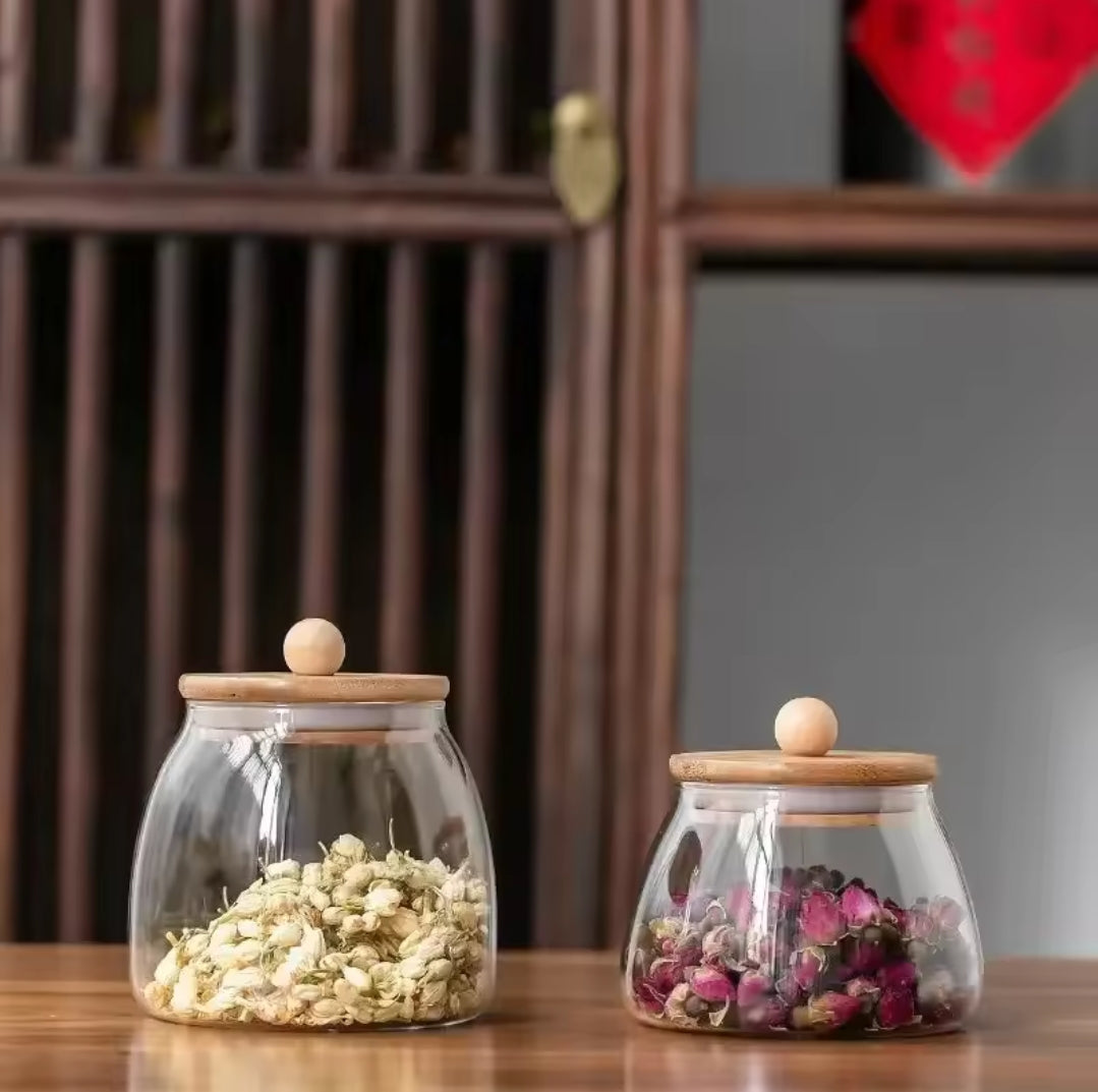Récipients en verre de 600 ml dotés d'un couvercle en bambou - Kshs 1195/- pour une unité ou 3 unités - Kshs 2800/-