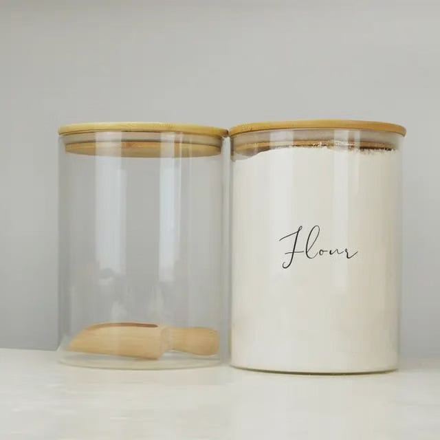 Grandes jarres de rangement en verre avec des couvercles en bambou