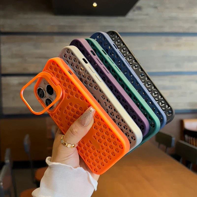 Optimisez votre iPhone grâce à cette coque de dissipation thermique en mesh respirant MagSafe haut de gamme, conçue pour les modèles 11, 12, 13, 14 et 15 Pro Max Plus. Son design en mesh respirant améliore la circulation de l'air, permettant à votre appareil de rester frais et de fonctionner à son optimum. Elle inclut un support magnétique pour une prise sûre et une utilisation mains libres, ainsi qu'une protection de l'objectif pour garder votre caméra en sécurité. La compatibilité avec MagSafe permet une charge sans fil simplifiée. Mélangeant style, praticité et protection solide, cette coque représente l'accessoire idéal pour votre iPhone.