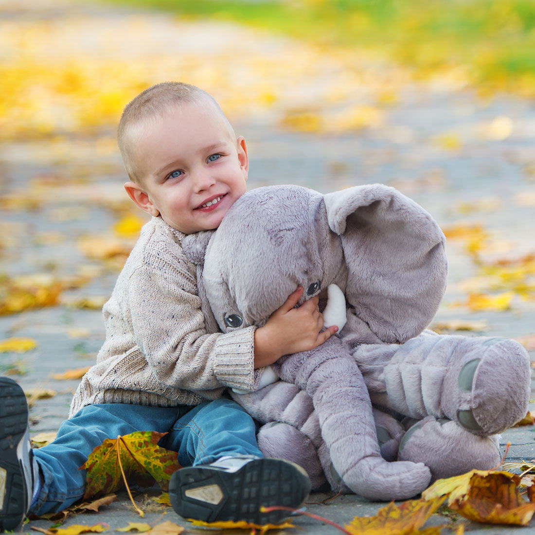 L'éléphant est extrêmement doux et fournit aux jeunes enfants un lieu idéal pour se blottir et jouer.