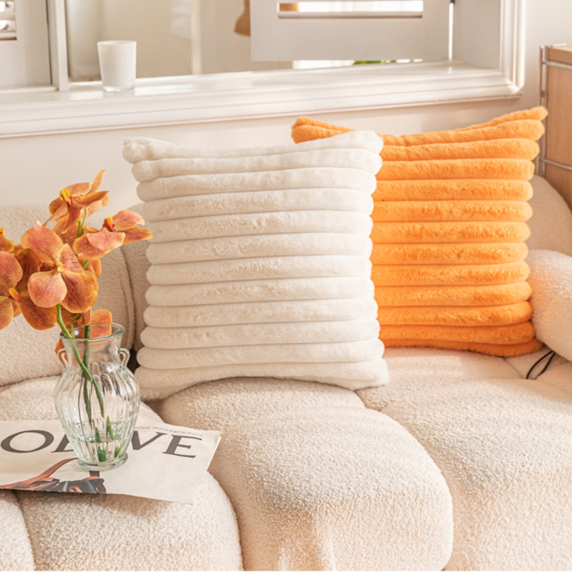 Faux-Fur rayé taie d'oreiller