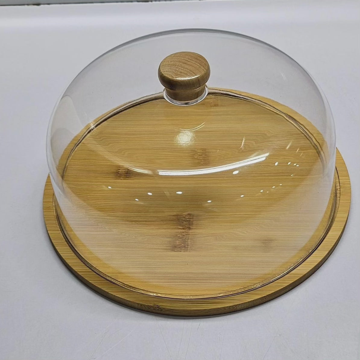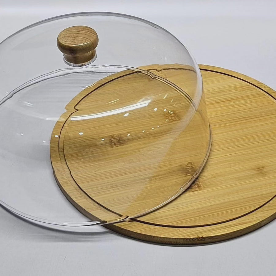 Couvercle en acrylique pour gâteau avec plateau en bambou