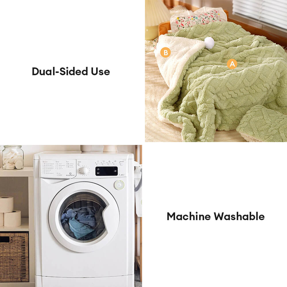 - Réversible et chaleureux: Fabriquée avec un design à double face, avec une peluche douce d'un côté et une fausse laine d'agneau agréable de l'autre, offrant chaleur et confort des deux côtés.