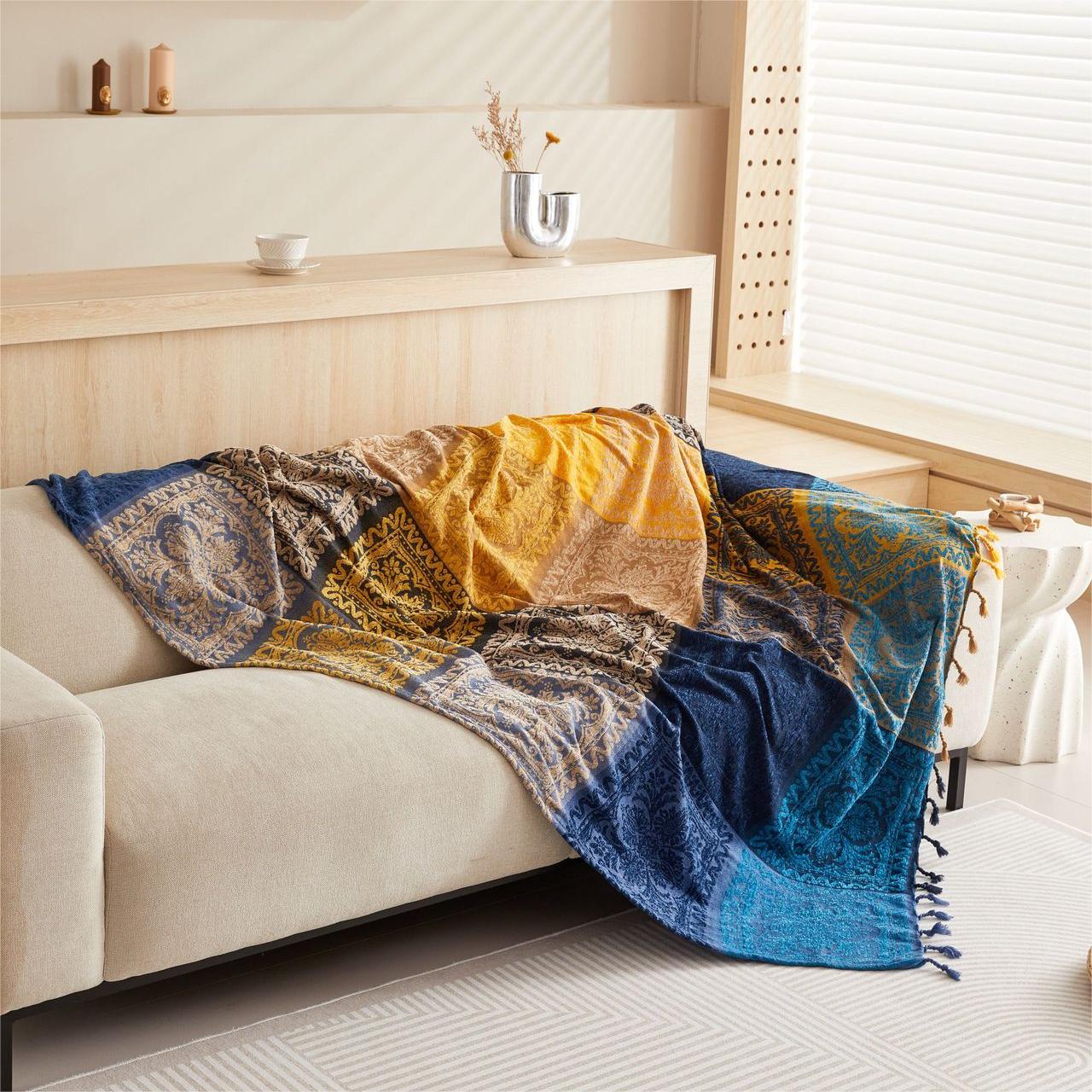Matériau de premier choix : Ce plaid en chenille vibrant est conçu en tissu chenille doux, incorporant une technologie Jacquard de pointe, ce qui le rend extrêmement agréable au toucher et aéré, tout en offrant une excellente résistance au glissement. Sa texture riche et sa durabilité sont impressionnantes.