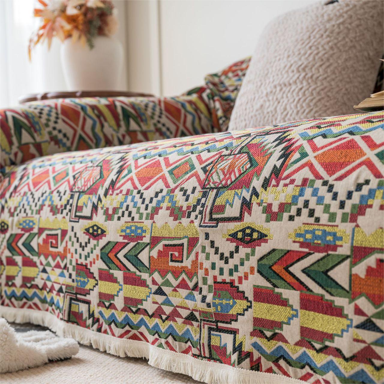 Idéale pour l'Embellissement : Ce design inspiré de motifs tribaux, avec ses teintes vibrantes et son élégant motif de pied-de-poule, apportera une touche vibrante à votre intérieur. Les délicates franges situées à la base ajoutent une sophistication discrète. Les housses pour canapés sont idéales non seulement pour protéger vos meubles, mais elles leur apportent également une transformation instantanée, prolongeant la longévité de votre canapé tout en permettant d'éviter des dépenses superflues.