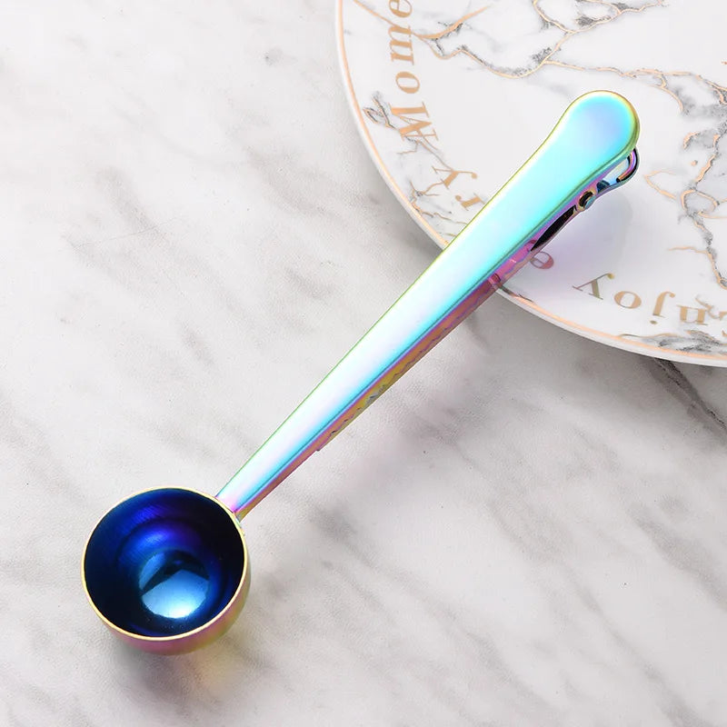 Cuillère à café en acier inoxydable doré et clip de fermeture de sac - Outil de cuisine multi-fonction