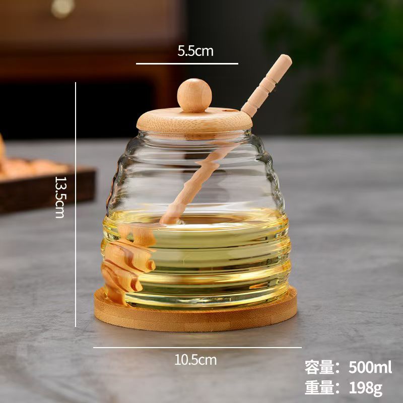 Mini pots en verre de miel polyvalents avec un couvercle en bois et un bâtonnet pour mélanger - 1550/-