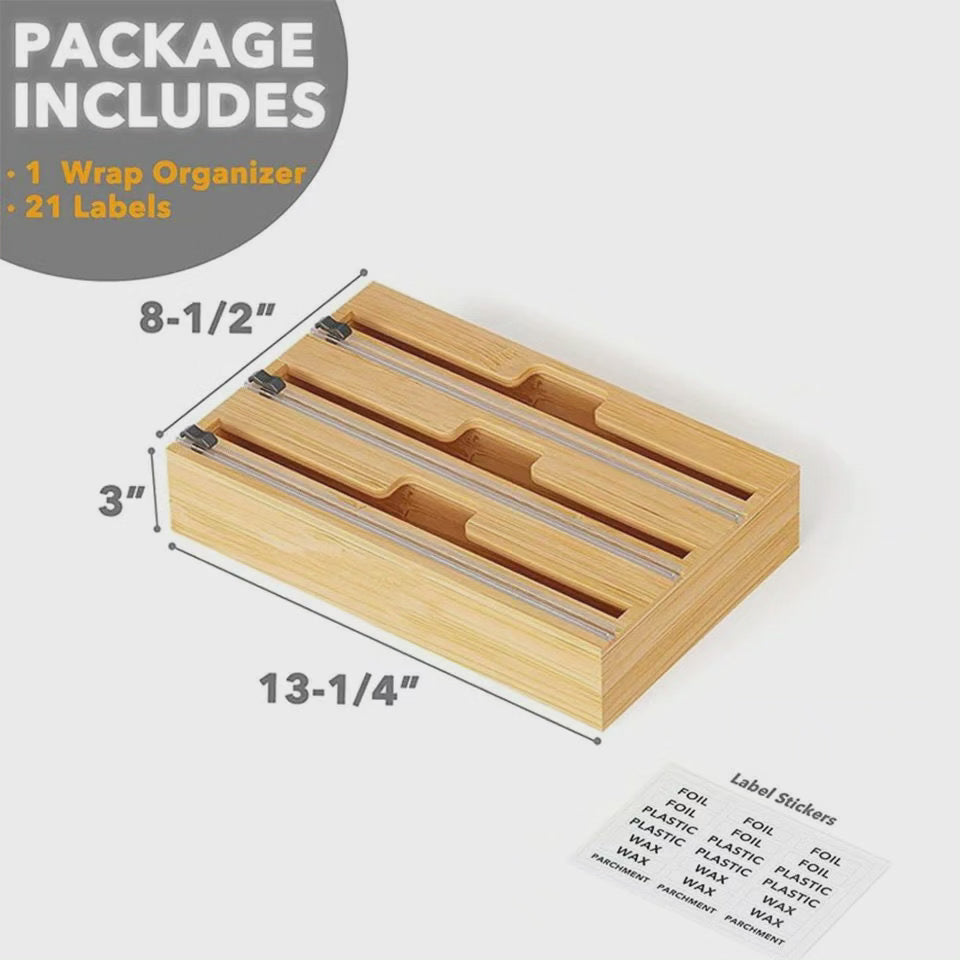 ✓Organisateur en bois pour tiroir de cuisine, distributeur d'emballage robuste et facile à trancher