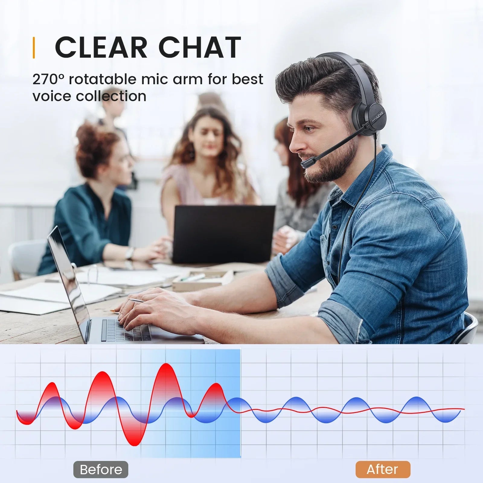 Casque de bureau filaire EKSA H15 avec microphone - TWS réduction de bruit HiFi stéréo dynamique