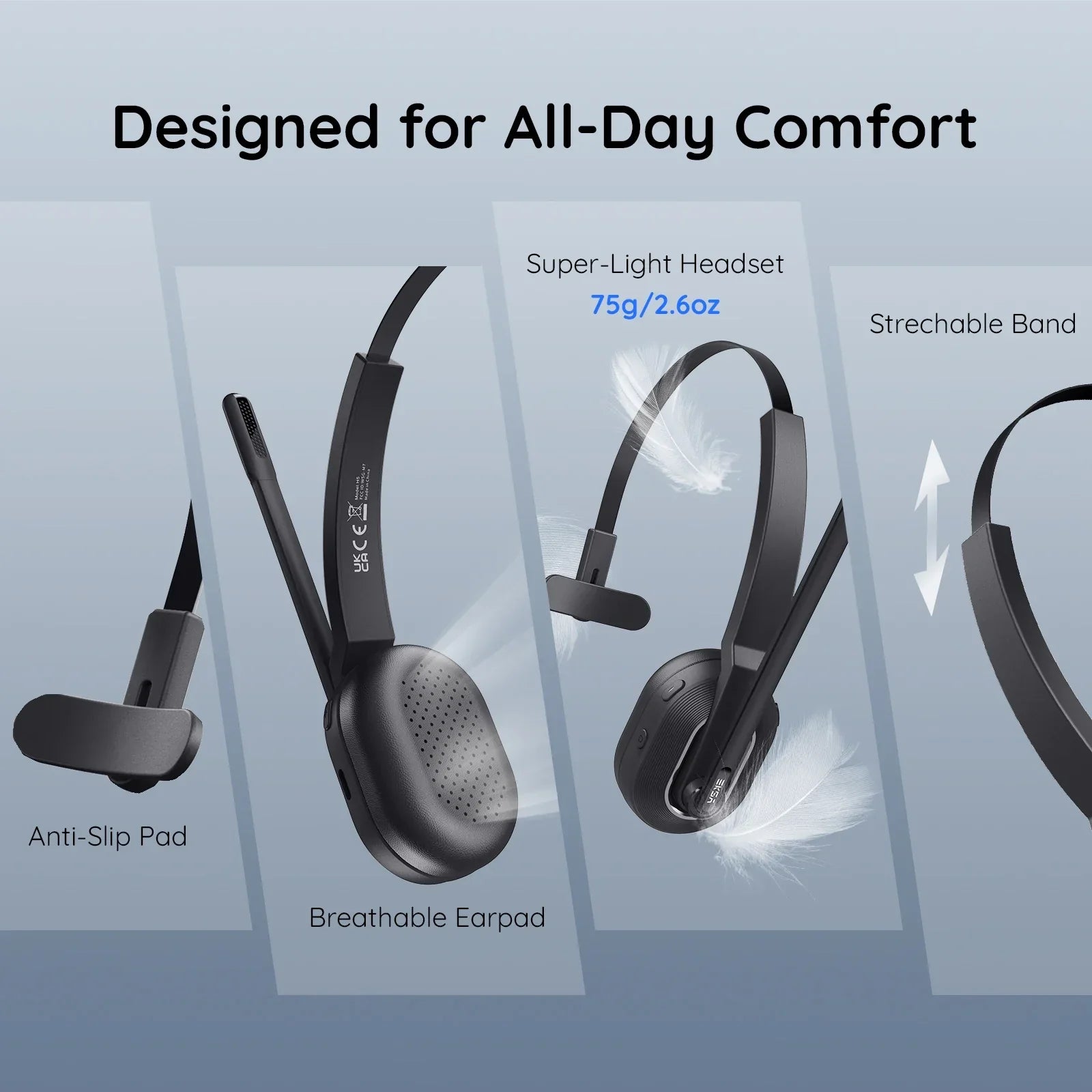 EKSA H5 Casque Sans Fil Bluetooth 5.0 avec Micro - TWS Réduction de Bruit HiFi Stéréo Casque Dynamique avec Support