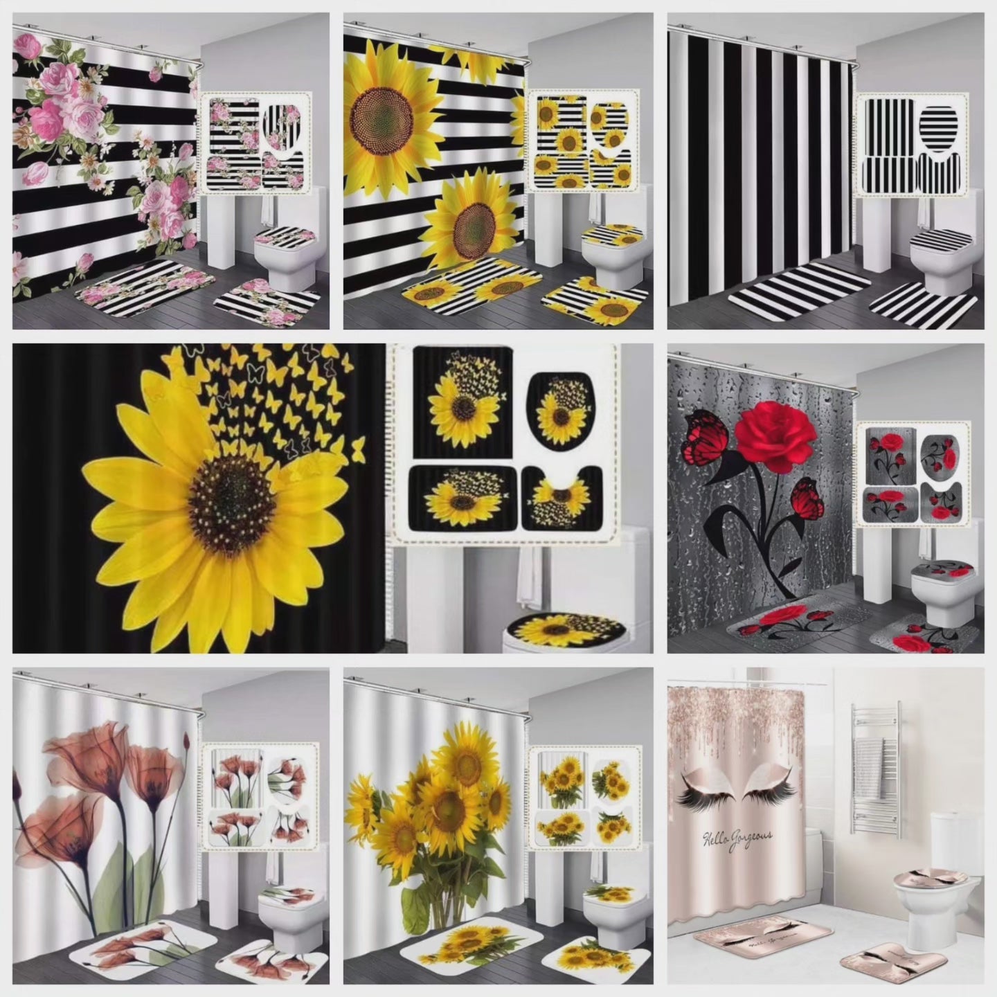 *Ensemble de 4 pièces de tapis de salle de bain et rideau de douche* -3450/-
