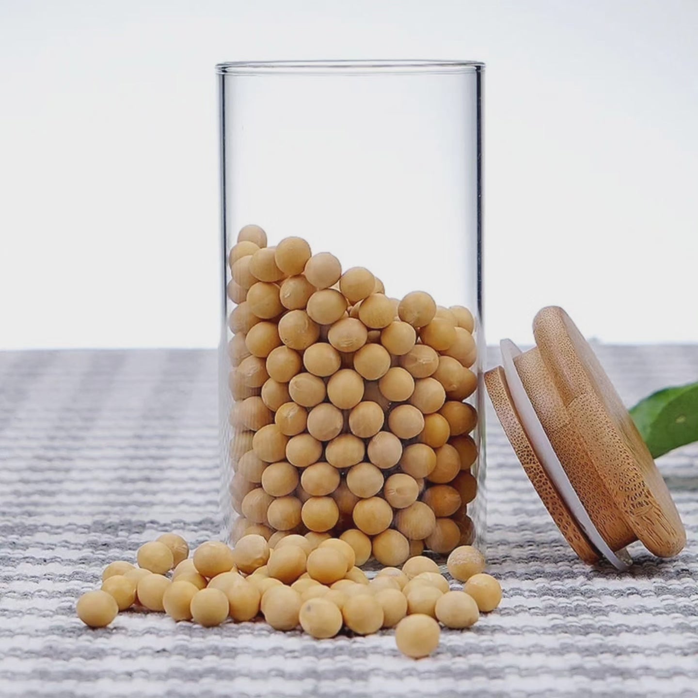 Ensemble de 5 bocaux en verre avec couvercles en bambou