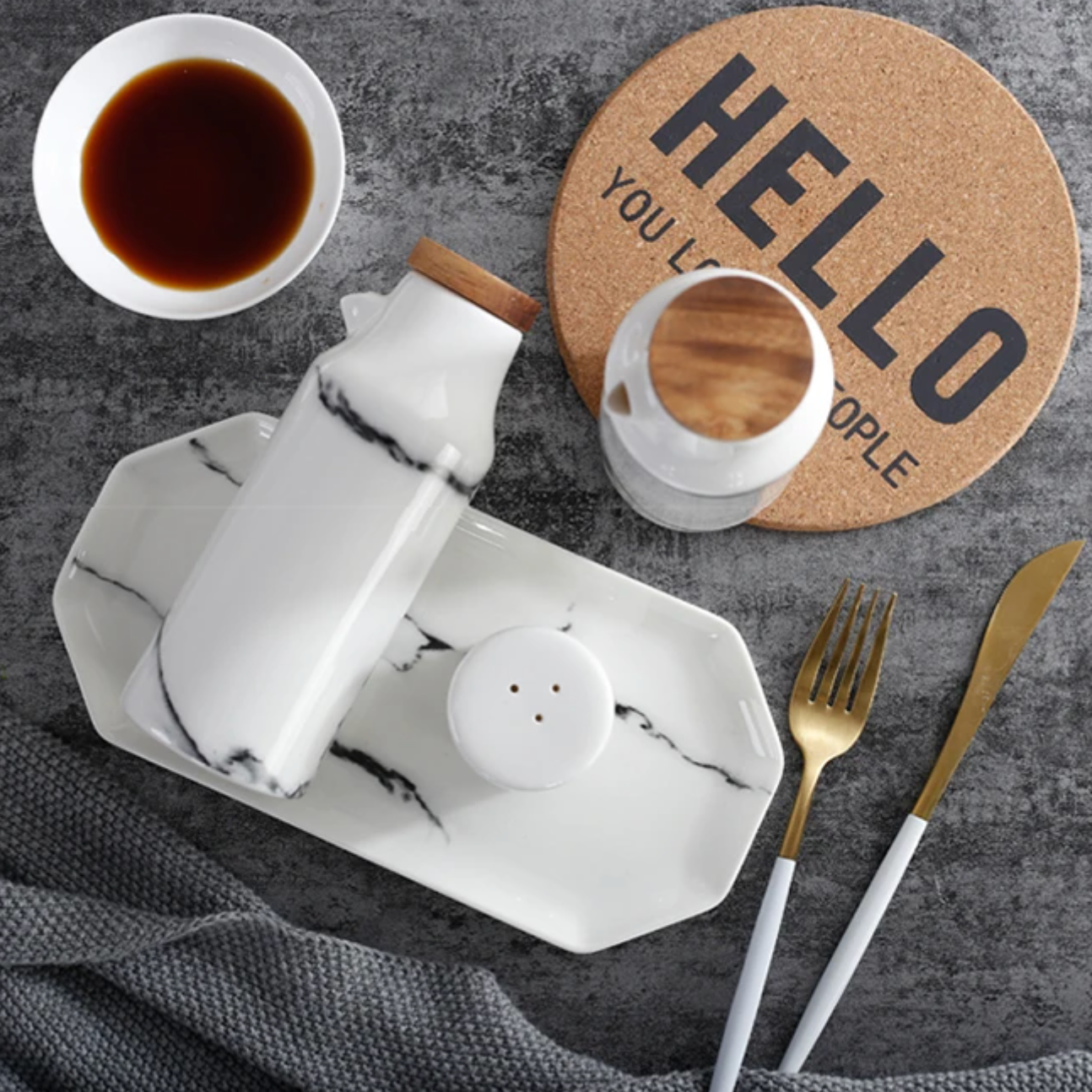 This set combines sleek design with practical use, fitting effortlessly into any dining setting. Featuring user-friendly containers, it keeps essential condiments within reach, enhancing the flavor of every meal with ease. Whether you're hosting a dinner party or enjoying a quiet meal at home, this set adds a touch of sophistication to your table.