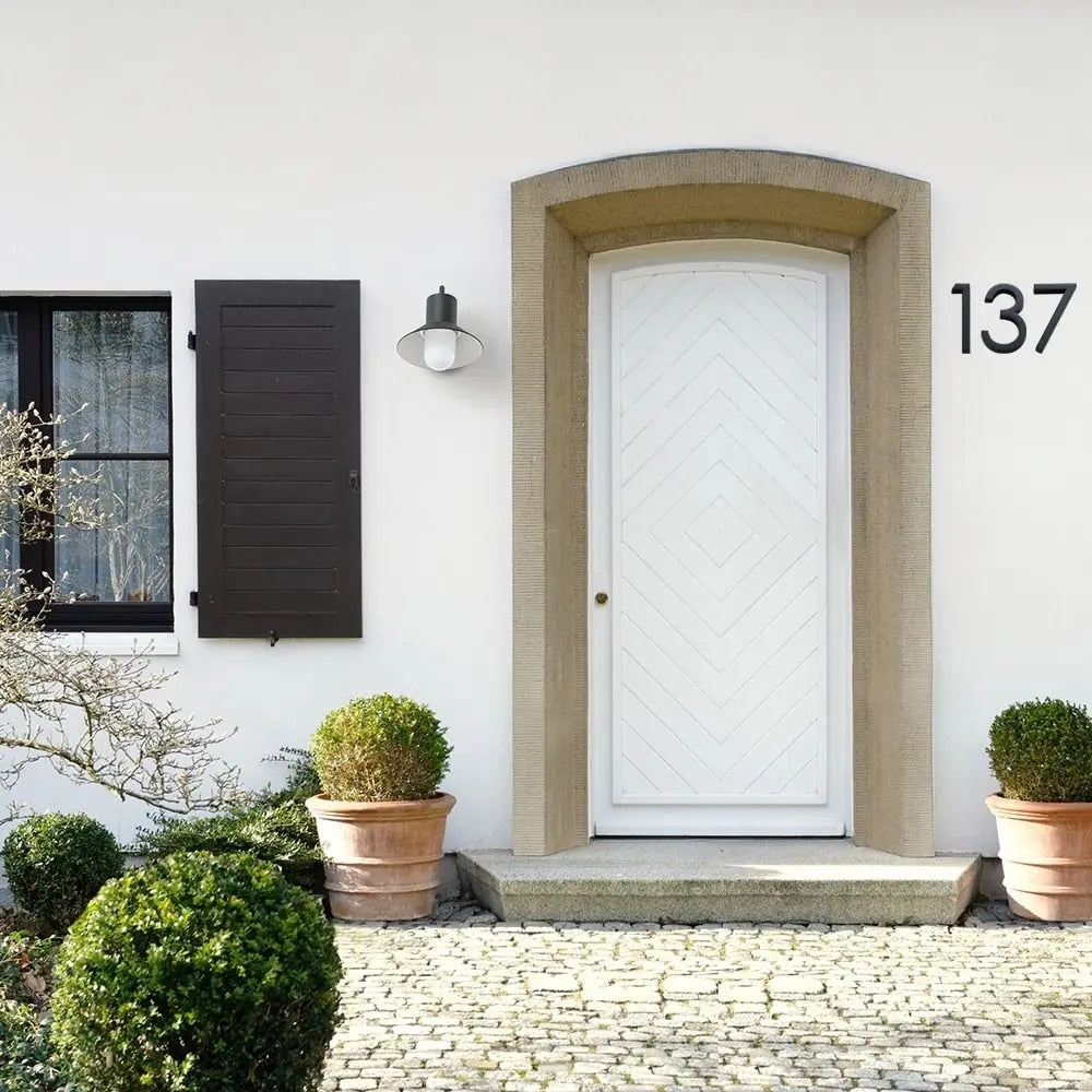 Les numéros de maison sont simples à poser et sont livrés avec le matériel de montage, facilitant ainsi la tâche. Les chiffres sont fabriqués à partir de matériaux robustes qui assurent une visibilité et un attrait visuel durables. Leur design moderne s'harmonise avec une variété de styles architecturaux, allant du contemporain au classique.