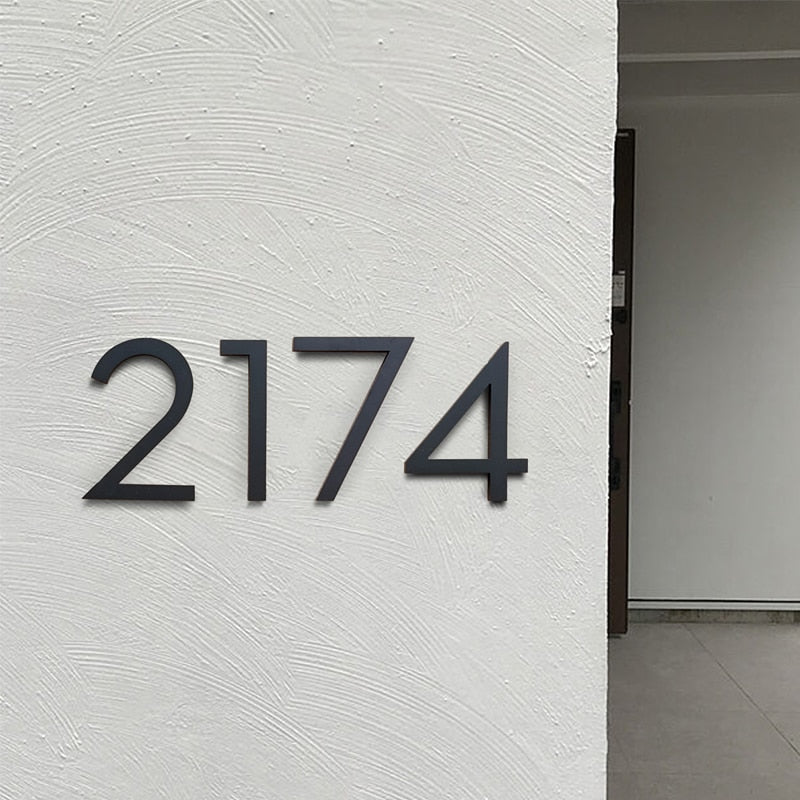 Nos Numéros de Maison Eunice représentent une solution raffinée et moderne pour mettre en avant votre adresse. La teinte noir mat saisissante se démarque de tout fond, et ces chiffres ont été créés dans une police large et épaisse, facile à lire de loin. Vous pouvez choisir entre un montage à plat contre le mur ou une installation en flottant. Ces numéros sont fournis avec tout le nécessaire pour les deux méthodes de fixation ainsi que des instructions, garantissant ainsi une installation sans tracas. L'option flottante apporte une touche d'élégance et de raffinement à l'extérieur de votre habitat.