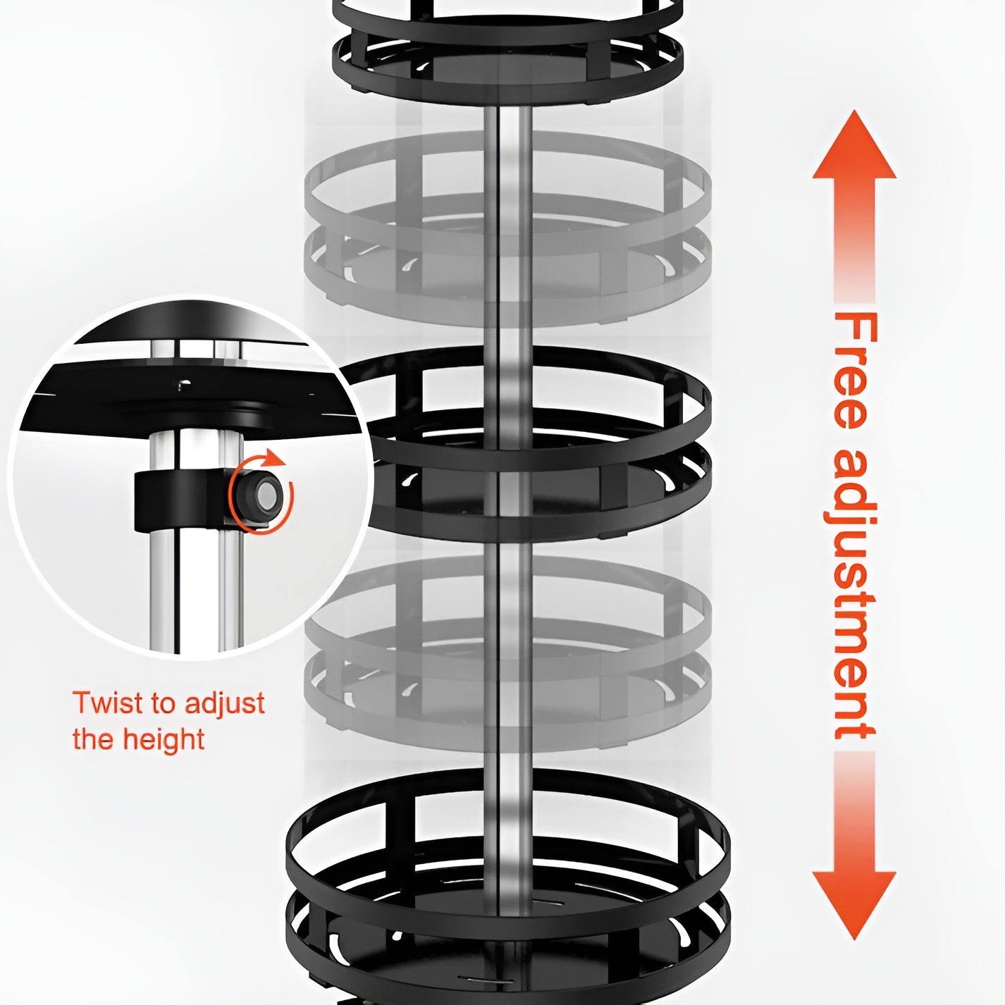 Le porte-épices Floroux à rotation complète de 360° combine un style élégant avec une fonctionnalité remarquable. Avec sa base tournante et ses niveaux adaptables, cet organisateur assure une présentation parfaite dans votre salle de cuisine. Que ce soit pour les épices, les bouteilles ou les récipients de rangement – tout est à portée de main et soigneusement rangé.